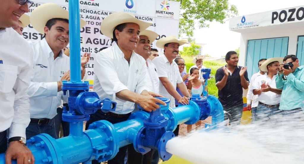 Huetamo, Michoacán.- Al refrendar su decisión de impulsar el desarrollo de la Tierra Caliente, el Gobernador del Estado, Silvano Aureoles Conejo, inauguró diversas obras de beneficio social para las y los huetamenses, entre ellas el sistema de agua potable de la Alameda, que tendrá una inversión de 25 millones de pesos, con lo cual cumple su compromiso de atender una demanda histórica de abastecer del vital líquido a la población de este municipio.