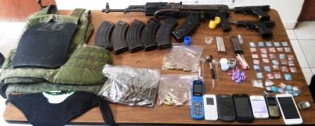 A las ocho personas que fueron detenidas por su presunta participación en la venta de drogas en la región les fue decomisada un arma larga calibre 7.62×39 con seis cargadores y 116 cartuchos útiles; dos armas cortas calibre .9mm, con dos cargadores y 15 cartuchos útiles.