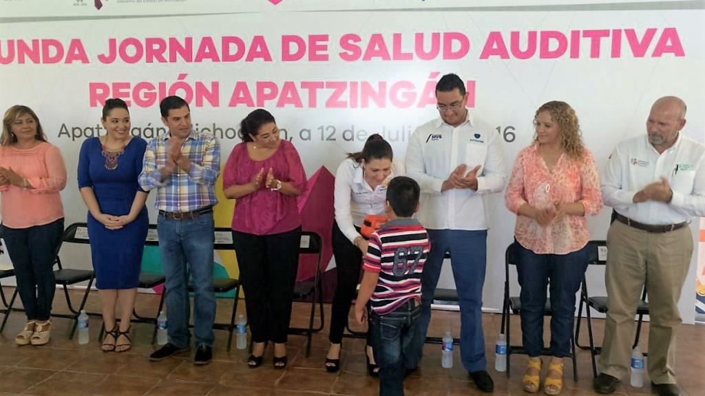 Apatzingán, Michoacán.- Este martes en este municipio de la Tierra Caliente fue inaugurada la Segunda Jornada de Salud Auditiva “Ponte Oreja”, durante la cual la Coordinación de Atención Ciudadana del Gobierno del Estado, junto con la Fundación MVS Radio y los ayuntamientos de los municipios con beneficiarios, entregarán 596 auxiliares auditivos.