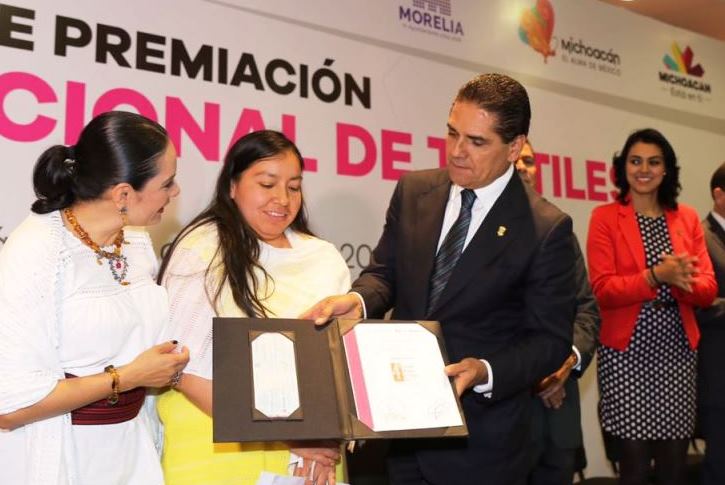 Morelia, Michoacán, a 19 de julio de 2016.- El Gobernador del Estado Silvano Aureoles Conejo, en conjunto con la directora general del Fondo Nacional para el Fomento de las Artesanías (Fonart), Liliana Romero Medina, premiaron a parte de los 53 artesanas y artesanos que resultaron ganadores del 4o Concurso Nacional de Textiles.