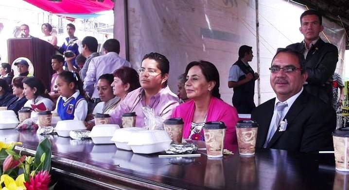 Maravatío, Mich.-Los regidores María Graciela Arévalo García, Juana Cabrera Ochoa, Roció Chávez Fernández, Sonia Bautista González y Said Eloy Pérez Ávila, abandonaron la mesa del Presídium del acto cívico con motivo del Natalicio de Benito Juárez y del Festival Folklórico de la Primavera celebrado este 21 de Marzo en esta Ciudad, luego de que la Candidata a la Gobernatura Luisa María Calderón Hinojosa por el PAN llegara acompañada del Presidente Provisional Patricio Zamudio Sánchez a presidir el acto del desfile de la Primavera.