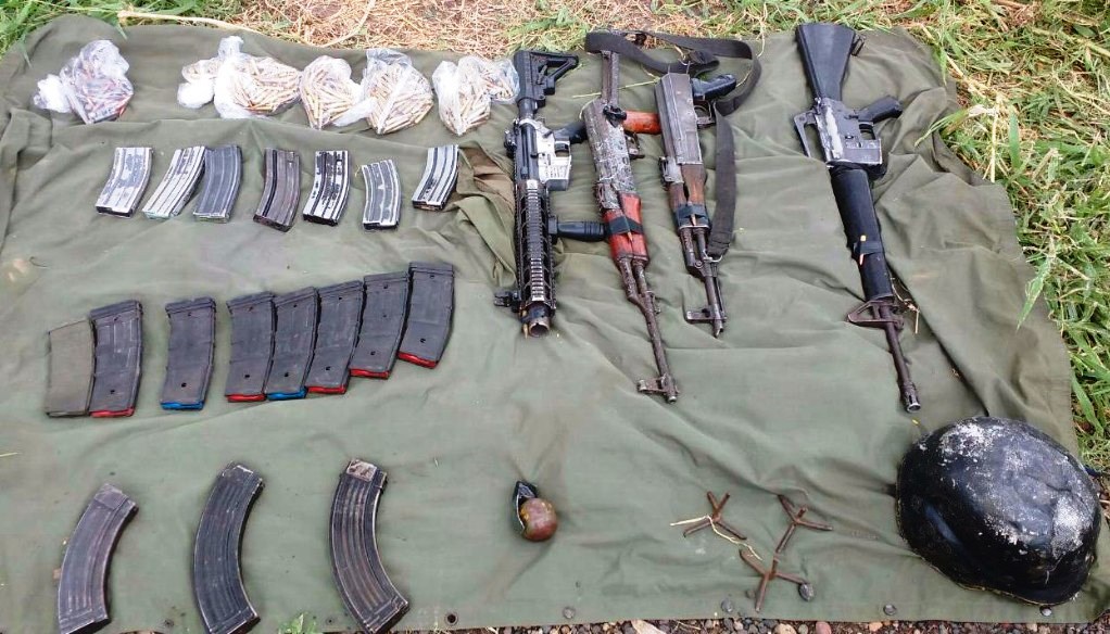 En la revisión, los uniformados localizaron en el interior del automotor cuatro armas largas calibres .223 mm y 7.62x39mm, una granada de mano, un casco balístico, 18 cargadores para arma larga, 15 de ellos calibre .223 y tres calibre 7.62mm x 39mm y 478 cartuchos útiles, de los cuales 415 eran calibre .223 mm y 63 calibre 7.62×39 mm.