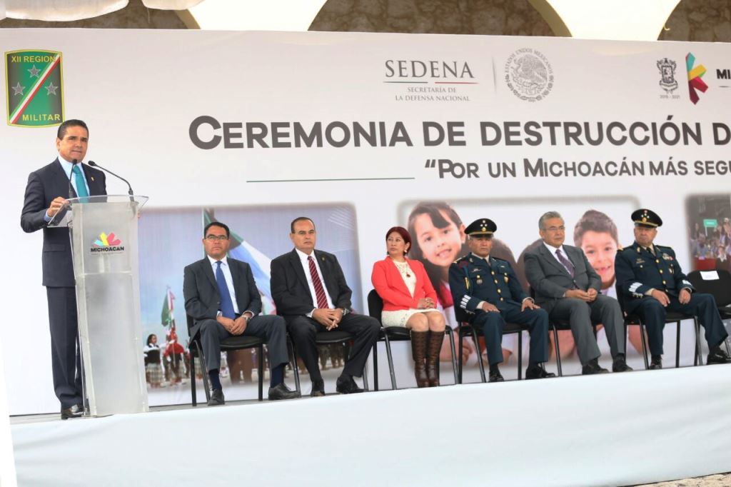 En el marco de la ceremonia con motivo de la destrucción de armamento decomisado por la Secretaría de la Defensa Nacional, Silvano Aureoles manifestó la necesidad de construir la paz, un futuro en orden y con estabilidad, por lo que refrendó su compromiso en esta materia.