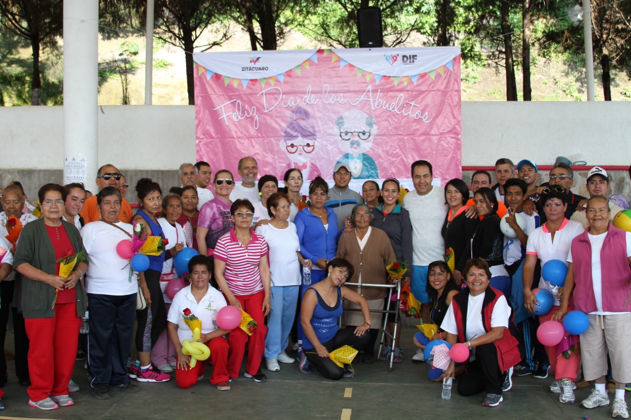 Zitácuaro, Mich.- Con motivo del Día del Abuelo, el gobierno municipal que encabeza Carlos Herrera Tello y el Sistema para el Desarrollo Integral de la Familia de Zitácuaro, que preside Rosario Jasso de Herrera, realizaron emotivos festejos a los adultos mayores zitacuarenses, uno de ellos, este domingo en la Unidad Deportiva Siglo XXI donde se realizó una activación física.
