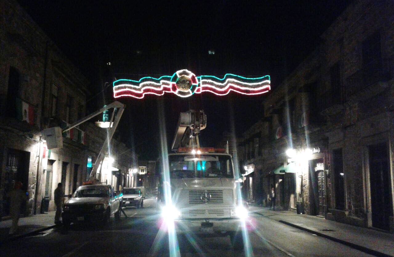 Morelia, Mich.-La Secretaría de Servicios Públicos, a través de la Dirección de Alumbrado Sustentable, vistió el Centro Histórico con el espíritu patriótico, enmarcando así, los diferentes eventos que se celebrarán durante este mes de septiembre, como la Independencia de México y el natalicio del Generalísimo, Don José María Morelos.