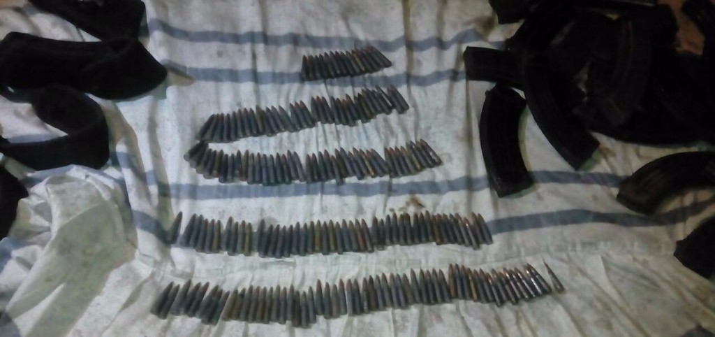 Asimismo, se localizaron y aseguraron 28 cargadores para arma larga AK-47, 14 para calibre 7.62 x51, dos cargadores para arma larga calibre .223, dos cargadores para arma corta calibre .38 Súper, así como dos mil 824 cartuchos útiles; dos fornituras color negro, siete radios de comunicación, dos barras de estrobos de uso policial, una mochila militar, un uniforme militar, dos chalecos tácticos y dos pecheras negras.