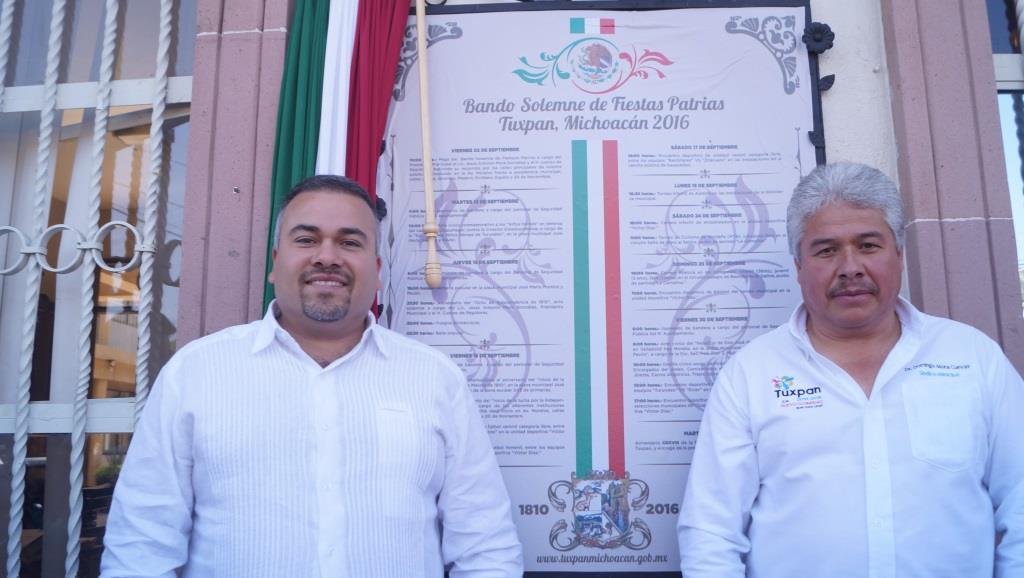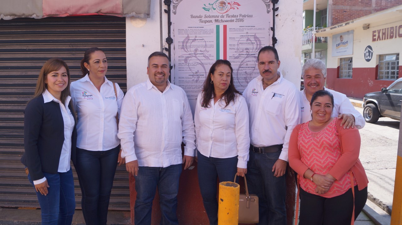 Tuxpan, Michoacán a 5 de septiembre de 2016.- El Ayuntamiento de Tuxpan, que preside el Lic. Jesús Antonio Mora González, en compañía de cabildo municipal, así como del comité de fiestas patrias, autoridades auxiliares y educativas, llevaron a cabo la tradicional pega del bando solemne, con el objetivo de dar a conocer a los ciudadanos las actividades a realizar en el lapso del 2 de septiembre al 4 de octubre con motivo de conmemorar la independencia de nuestro país.