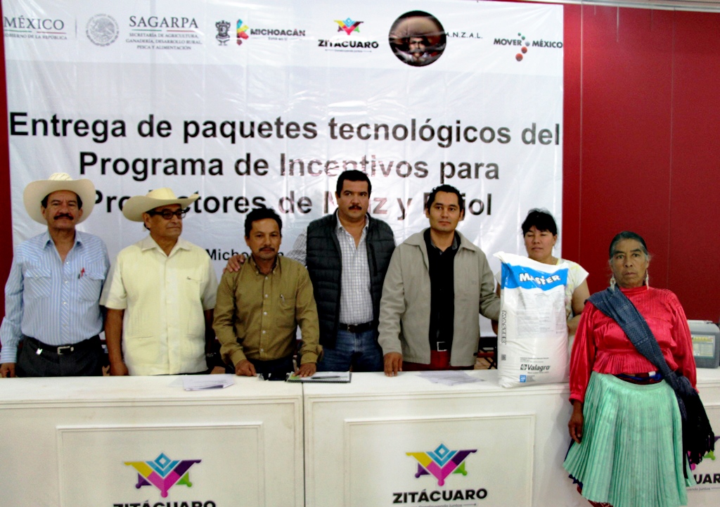 Zitácuaro, Mich.- Con el objetivo de incrementar la productividad e impulsar al sector rural en el municipio, la Secretaría de Agricultura, Ganadería, Desarrollo Rural, Pesca y Alimentación, SAGARPA y el Gobierno municipal, presidido por Carlos Herrera Tello, a través de la Dirección de Desarrollo Rural Sustentable, hicieron la entrega del Programa Incentivos para productores de Maíz y Frijol, (PIMAF 2016), que beneficia a 80 productores de la región.