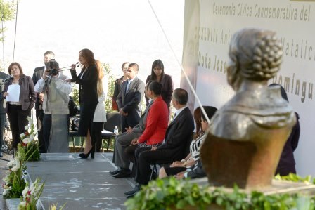 Morelia, Mich., a 08 de septiembre de 2016.-Con la finalidad de rendir honores a quién fuera pieza clave para la lucha de Independencia que inició el cura Don Miguel Hidalgo y Costilla, además de una participante en la Conspiración de Querétaro, autoridades municipales y estatales asistieron al CCXLVIII Aniversario del Natalicio de Doña Josefa Ortiz de Domínguez en la Plaza Cívica “Héroes de la Independencia”.