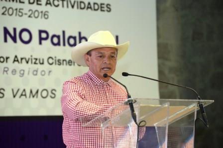 Acompañado por funcionarios municipales, regidores y representantes de la sociedad organizada, Arvizu Cisneros dijo en su informe, que a lo largo de este año se ha dedicado a trabajar de manera honesta y responsable, por el compromiso que tiene hacia la población tras haberlo elegido para el cargo.