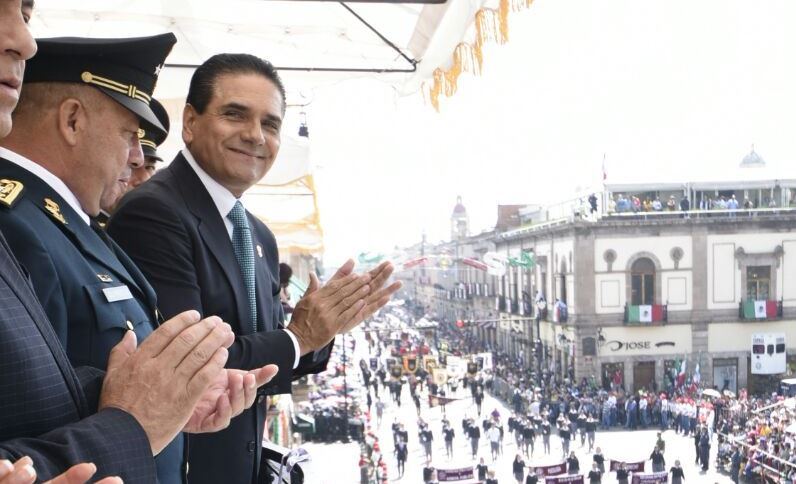 Cada contingente marchó al paso de sus bandas de guerra y saludaban con honor y respeto al jefe del Ejecutivo Estatal, Silvano Aureoles Conejo, quien permaneció en el balcón principal de Palacio de Gobierno acompañado del comandante de la XII Región Militar y mando especial para la seguridad de Michoacán, general Pedro Felipe Gurrola Ramírez; además del comandante de la 21 Zona Militar, José Francisco Morales Cázares y el presidente de la Mesa Directiva del Congreso del Estado, Pascual Sigala Páez, además de integrantes del Gabinete Legal del Gobierno del Estado.