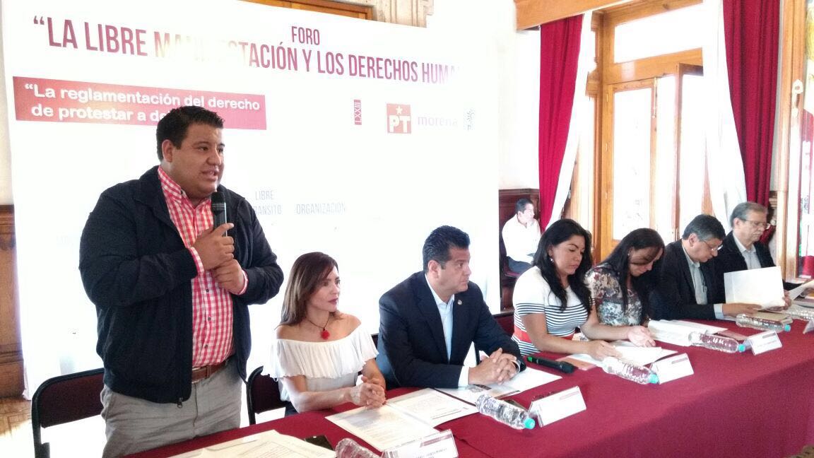 Morelia, Michoacán a 3 de Octubre de 2016.- La libre manifestación es uno de los derechos fundamentales de los michoacanos, ya que este estado tiene una profunda identidad con la lucha social y su regulación implicaría acortar una libertad ciudadana fundamental, así lo aseguró el Coordinador del Grupo Parlamentario del PRD en el Congreso del Estado, Juan Pablo Puebla Arévalo, en el marco del Foro “La Libre Manifestación y los Derechos Humanos”.