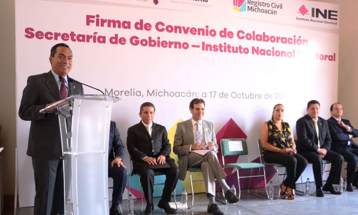 Precisó que con este convenio se actualiza el instrumento jurídico de colaboración entre el Gobierno del Estado de Michoacán y el entonces Instituto Federal Electoral (IFE) a las nuevas realidades institucionales, con la finalidad de ratificar el compromiso de ambas partes por actualizar la base de datos del padrón electoral y darle celeridad al proceso de entrega de información de los ciudadanos fallecidos y en plazos preestablecidos para estandarizar el flujo de información y elevar la calidad de la base de datos de los ciudadanos incluidos en el padrón electoral de la entidad.