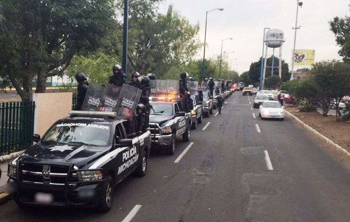 Durante los últimos días elementos de la Policía Michoacán han desplegado operativos de monitoreo ante la radicalización de acciones de estudiantes en diversas facultades de la Casa de Hidalgo para la liberación de vialidades y mantener el orden y tranquilidad de la población.