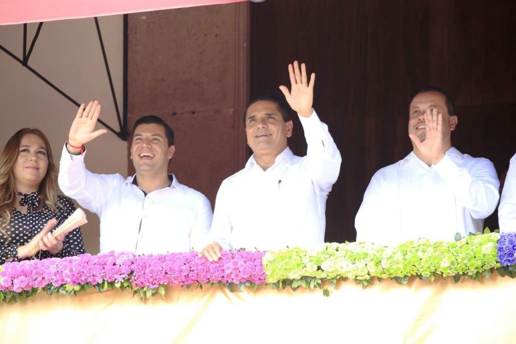 En el balcón del Palacio Municipal, el Gobernador Constitucional Silvano Aureoles Conejo, acompañado de los funcionarios de los tres niveles de gobierno, presenciaron el desfile en el que participaron instituciones educativas de Apatzingán y elementos de la Policía Michoacán y del Ejército Mexicano.