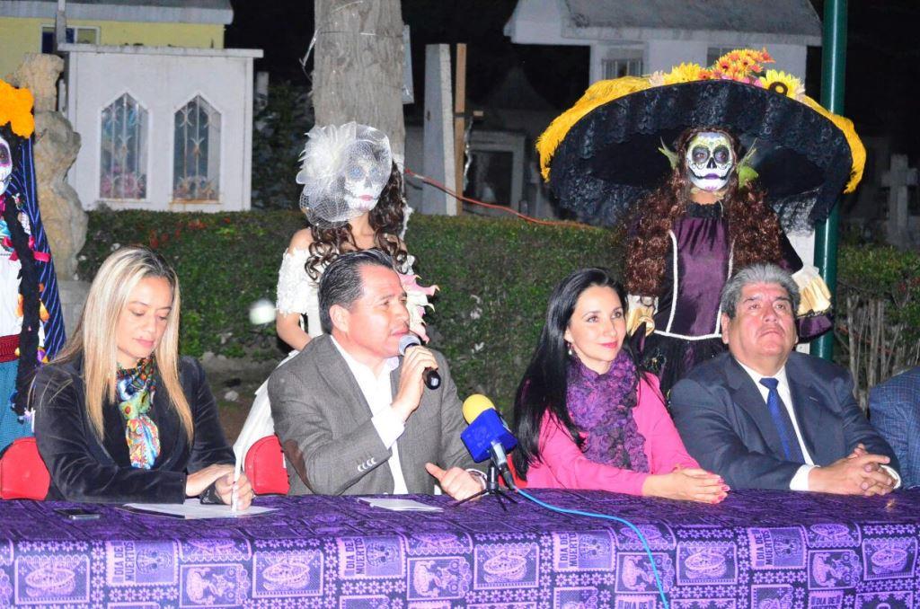 En rueda de Prensa encabezada por Thelma Aquique Arrieta, Secretaria de Turismo Municipal; Eduardo Ramírez Canals, Coordinador de Protección Civil y Bomberos de Morelia; Alma Rosa Bahena Villalobos, Regidora y Carlos Raymundo Mena Díaz, Jefe del Departamento de Panteones Municipales de Morelia, José Luis Gil Vázquez, Secretario de Servicios Públicos Municipales, informó que como cada año, el Ayuntamiento de Morelia que encabeza el Alcalde, Alfonso Martínez Alcázar, se ha preparado para recibir estas fiestas tan tradicionales para los Morelianos, en especial para los que visitan el Panteón Municipal, para los cuales se han reforzado los servicios como poda de árboles, servicios de pintura y la iluminación del mismo.
