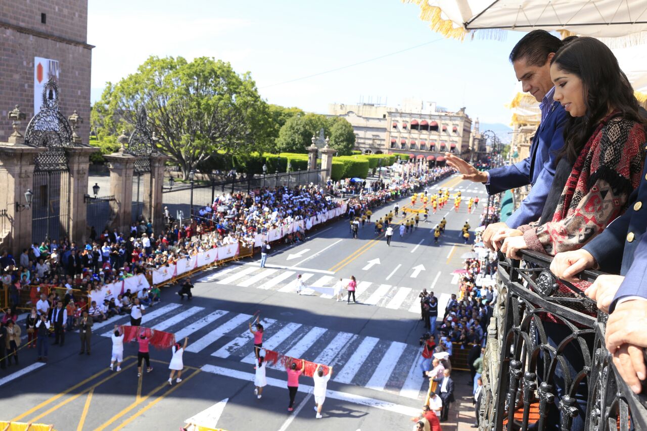 En una fiesta cien por ciento familiar que congregó a miles de michoacanas y michoacanos en la antigua Calle Real, estudiantes de planteles públicos y privados desde el nivel primaria hasta superior, además de asociaciones de deportistas dieron muestra de sus habilidades a través de tablas rítmicas, pirámides, artes marciales, entre otras acciones que arrancaron aplausos al público.