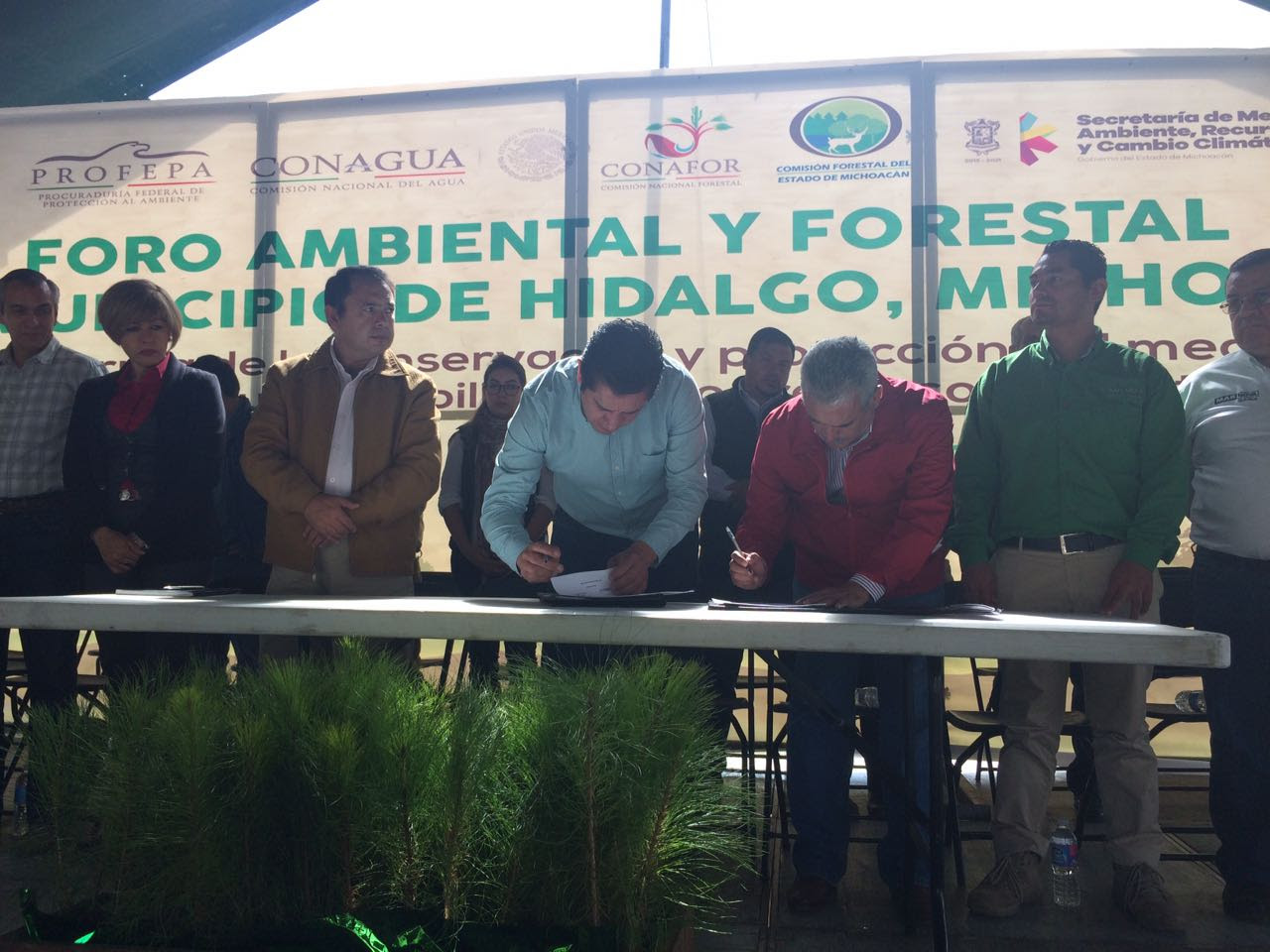 Ciudad Hidalgo, Michoacán.- El director general de la Comisión Forestal del Estado de Michoacán (Cofom), Roberto Pérez Medrano, encabezó el Primer Foro Ambiental y Forestal de este municipio, donde él y el alcalde Rubén Padilla Soto signaron un convenio de colaboración para elaborar un Programa Forestal que sentará las bases de atención a este sector con el compromiso de conservar y proteger los recursos naturales.