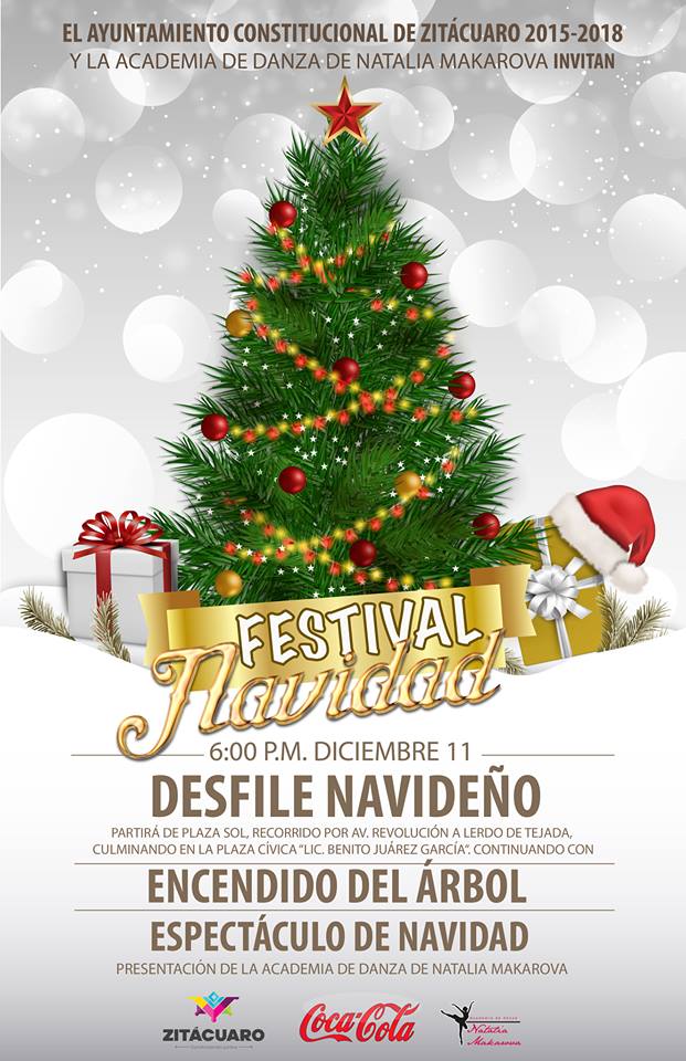 Zitácuaro, Mich.- Con un mensaje de armonía y un sentido de fraternidad, el próximo domingo 11 de diciembre, el Gobierno municipal presidido por Carlos Herrera Tello, invita a la población zitacuarense y visitantes, al Festival de Navidad que se realizará en la plaza Benito Juárez, en punto de las 6:00 de la tarde.