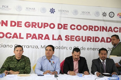 Venustiano Carranza, Michoacán.- En seguimiento a la estrategia para la seguridad que se implementa en la zona limítrofe con el estado de Jalisco, esta tarde el Gobernador de Michoacán, Silvano Aureoles Conejo, encabezó la reunión con el Grupo de Coordinación Local para la Seguridad en esta región de la Ciénaga de Chapala.