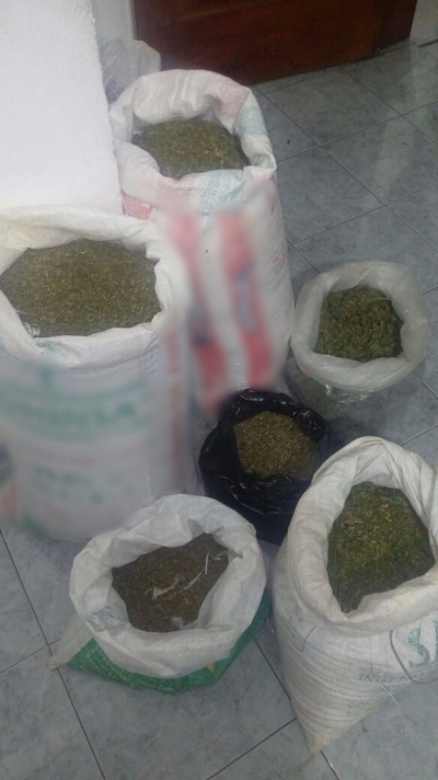 Al acercarse al sitio, aseguraron seis costales que en conjunto daban un peso aproximado de 30 kilogramos de semilla verde con características de la droga conocida como marihuana, así como una escopeta calibre .12mm y tres cartuchos útiles