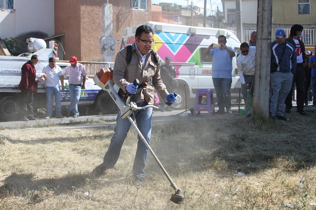Finalmente, se realizaron actividades como la limpia de áreas verdes, contando con el apoyo de personal del gobierno municipal; así como poda y encalado de árboles, balizamiento de topes y banquetas, sustitución de algunas lámparas, activación física y corte de pelo.