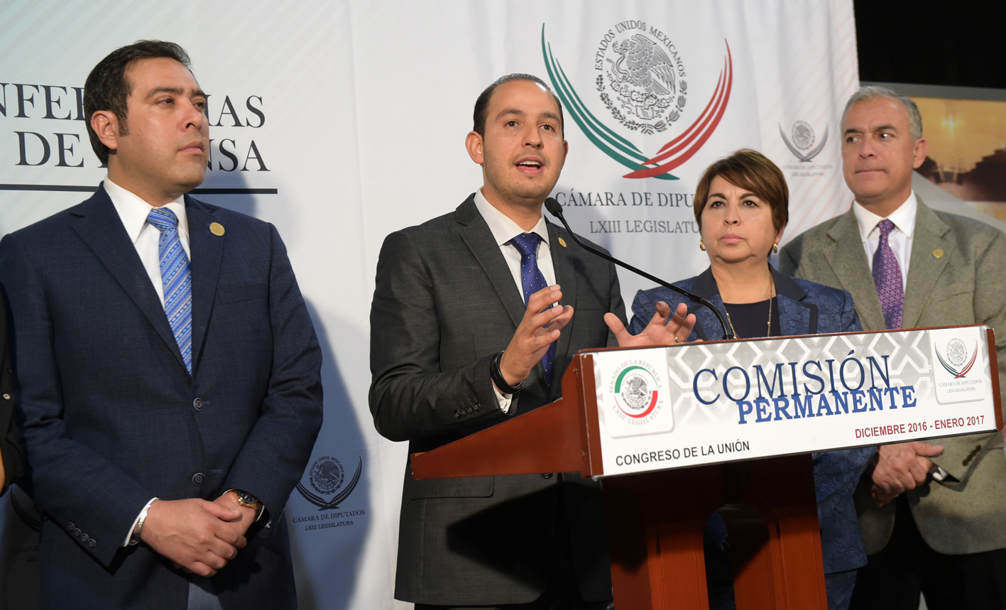 Ciudad de México.-Ante la orden ejecutiva que firmó el Presidente de los Estados Unidos, Donald Trump, para construir un muro fronterizo con México y el endurecimiento de las políticas migratorias, el Coordinador de los Diputados del PAN, Marko Cortés Mendoza presentó ocho propuestas concretas para defender a México.