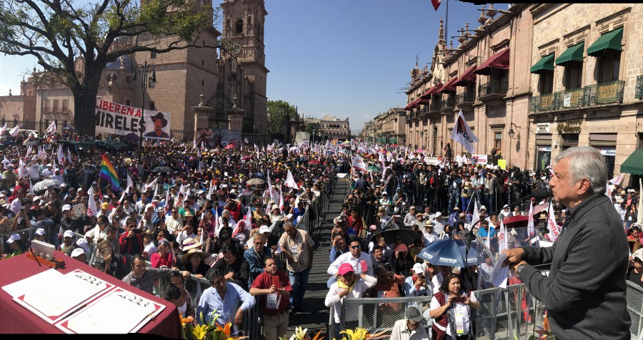 En Michoacán, hizo el compromiso con el general Lázaro Cárdenas del Río que “de manera democrática, aunque nos lleve tiempo, vamos a recuperar el petróleo que estos traidores han entregado a particulares nacionales y extranjeros” y se consultará al pueblo de México sobre las llamadas reformas estructurales.