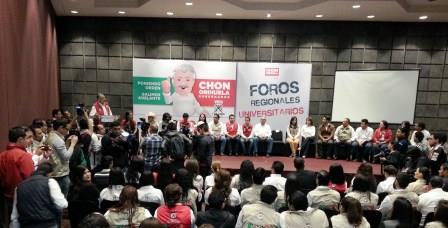 El dirigente estatal acompañó al abanderado priísta, Chon Orihuela al tercer foro regional universitario y subrayó que los jóvenes son el futuro de Michoacán, que Chon Orihuela será un gobernador con amplia experiencia pero con ideas frescas y de jóvenes.