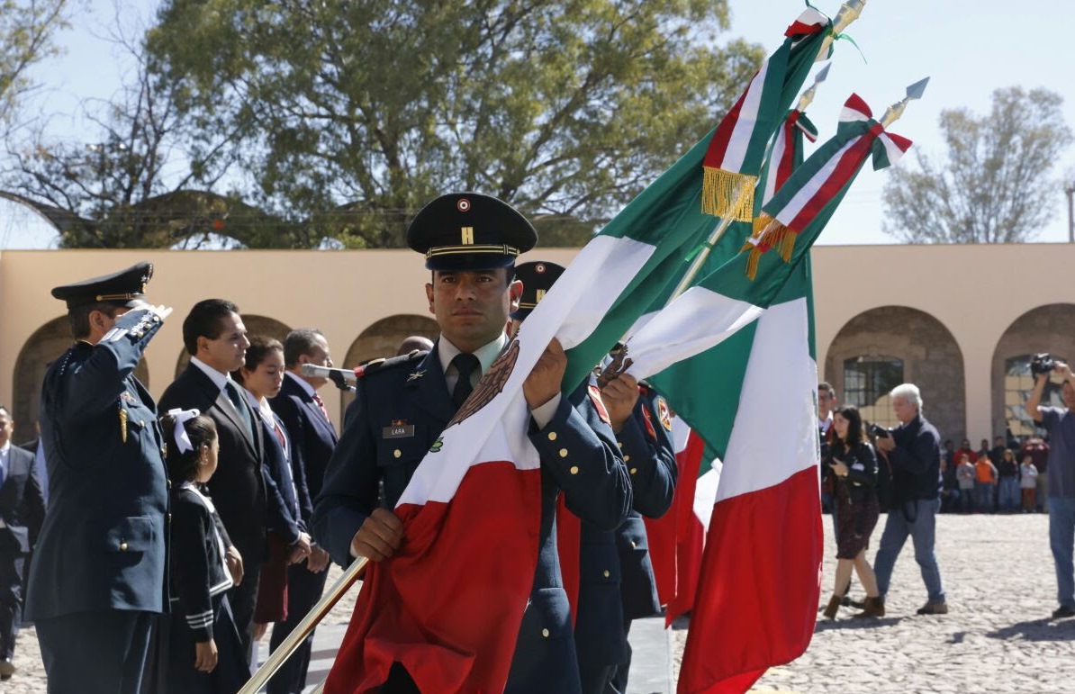 En las instalaciones de la 21 Zona Militar, Silvano Aureoles refirió que en toda plaza pública o escuela ondea este día la Bandera Nacional, que representa la justicia, la libertad y la nacionalidad. “Nuestra Bandera es historia e identidad. En momentos difíciles ha sido estandarte de unidad, así lo ameritan las circunstancias por lo que la Bandera debe ser el símbolo de unidad”.
