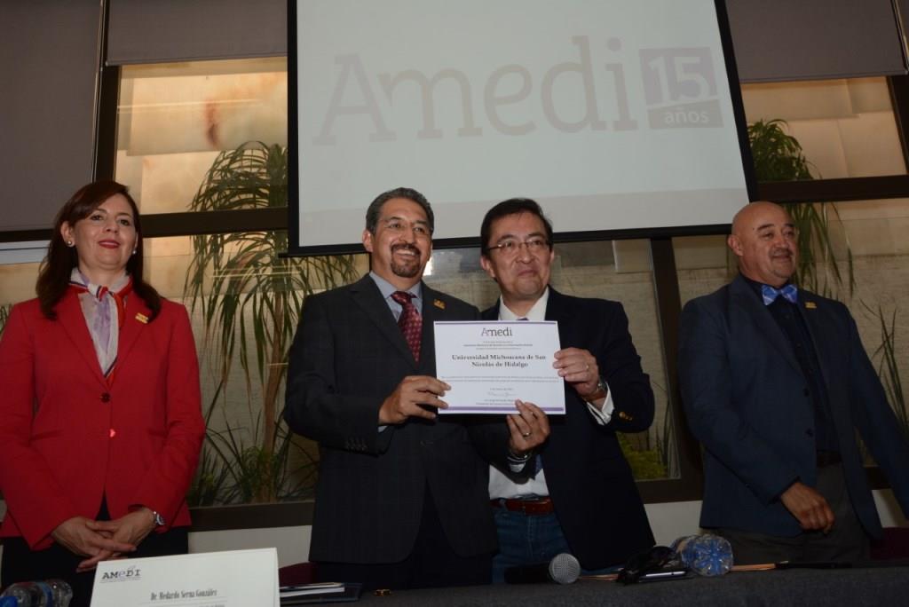 - Agradece rector nicolaita a la asociación civil Amedi, reconocimiento a la UMSNH por ser precursora del Derecho a la Información en México.