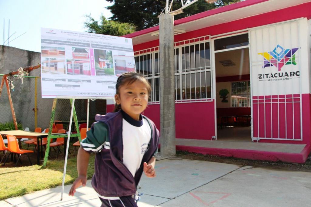 Zitácuaro, Mich.- Con una inversión superior a los 3 millones 300 mil pesos, este jueves el Gobierno municipal presidido por Carlos Herrera Tello, inauguró la construcción de aulas, comedores escolares, servicios sanitarios, redes eléctricas, tanques de agua potable, infraestructura carretera y la jefatura de tenencia en Crescencio Morales.