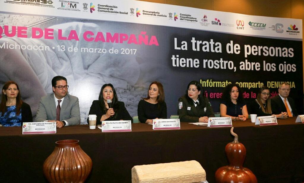 Morelia, Michoacán.- Para promover la denuncia como herramienta al alcance de los ciudadanos para prevenir, erradicar y sancionar la trata de personas y así asumir todos un sentido de corresponsabilidad y de compromiso para ser parte de la solución al problema, este lunes fue presentada la campaña “La trata de personas tiene rostro; abre los ojos”.