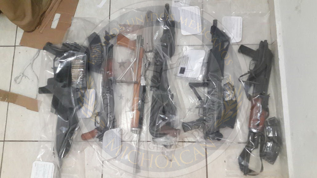 Asimismo, se aseguraron cuatro armas de fuego tipo fusil 7.62 (cuerno de chico) y dos más calibre 223; las seis armas se encontraban abastecidas con cargador y cartuchos útiles .