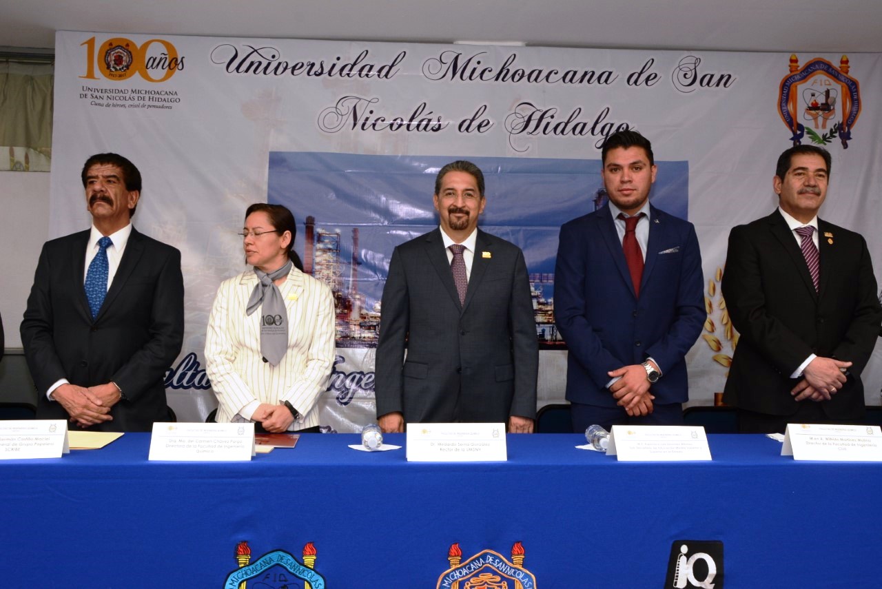 Morelia, Mich.- Una parte esencial de las lecciones que nos deja nuestra etapa de estudiantes es saber trabajar en equipo, el hombre y la mujer están hechos para colaborar y los grandes logros de progreso que hemos alcanzado como sociedad tienen que ver con la colaboración, aseguró Medardo Serna González, en acto conmemorativo por el LII Aniversario de la Facultad de Ingeniería Química (FIQ).