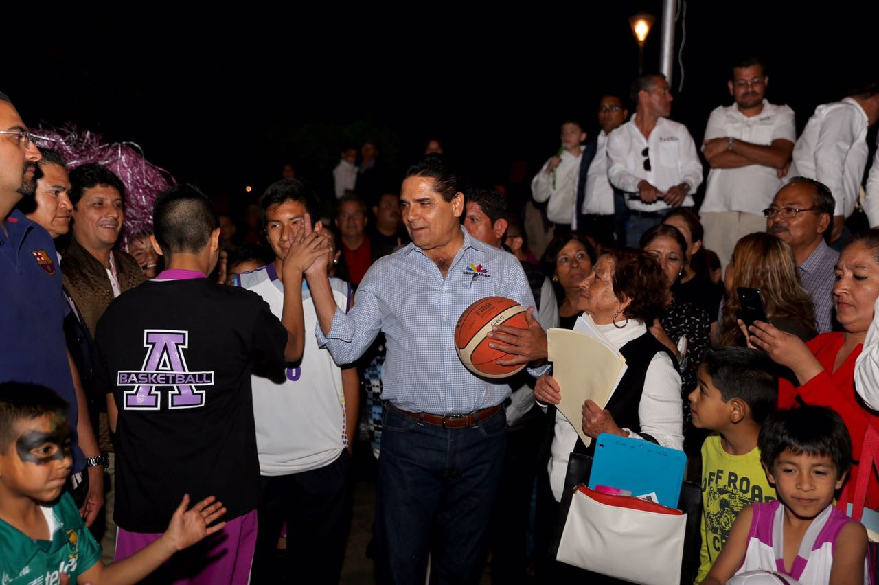 El Gobernador aprovechó la tarde y la convivencia con las y los vecinos, para practicar basquetbol junto con algunos integrantes de su Gabinete, hecho que también algunos infantes aprovecharon para “estrenar” los balones que les entregaron.