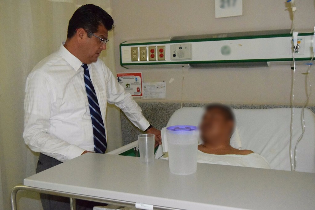 Morelia, Michoacán, a 7 de abril del 2017.- El secretario de Seguridad Pública del Estado, Juan Bernardo Corona Martínez visitó a los elementos de la Policía Michoacán que fueron lesionados por arma de fuego en Arantepacua, con la finalidad de dar seguimiento al estado de salud de cada uno de ellos.