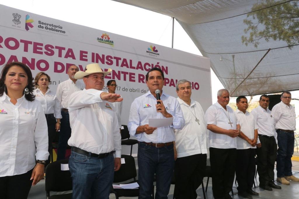 Vicente Riva Palacio, mpio. de San Lucas, Michoacán.- En cumplimiento a sus compromisos con los habitantes de esta tenencia, este lunes el Gobernador Constitucional Silvano Aureoles Conejo tomó protesta e instaló el Comité Ciudadano para el Desarrollo Integral de la comunidad.