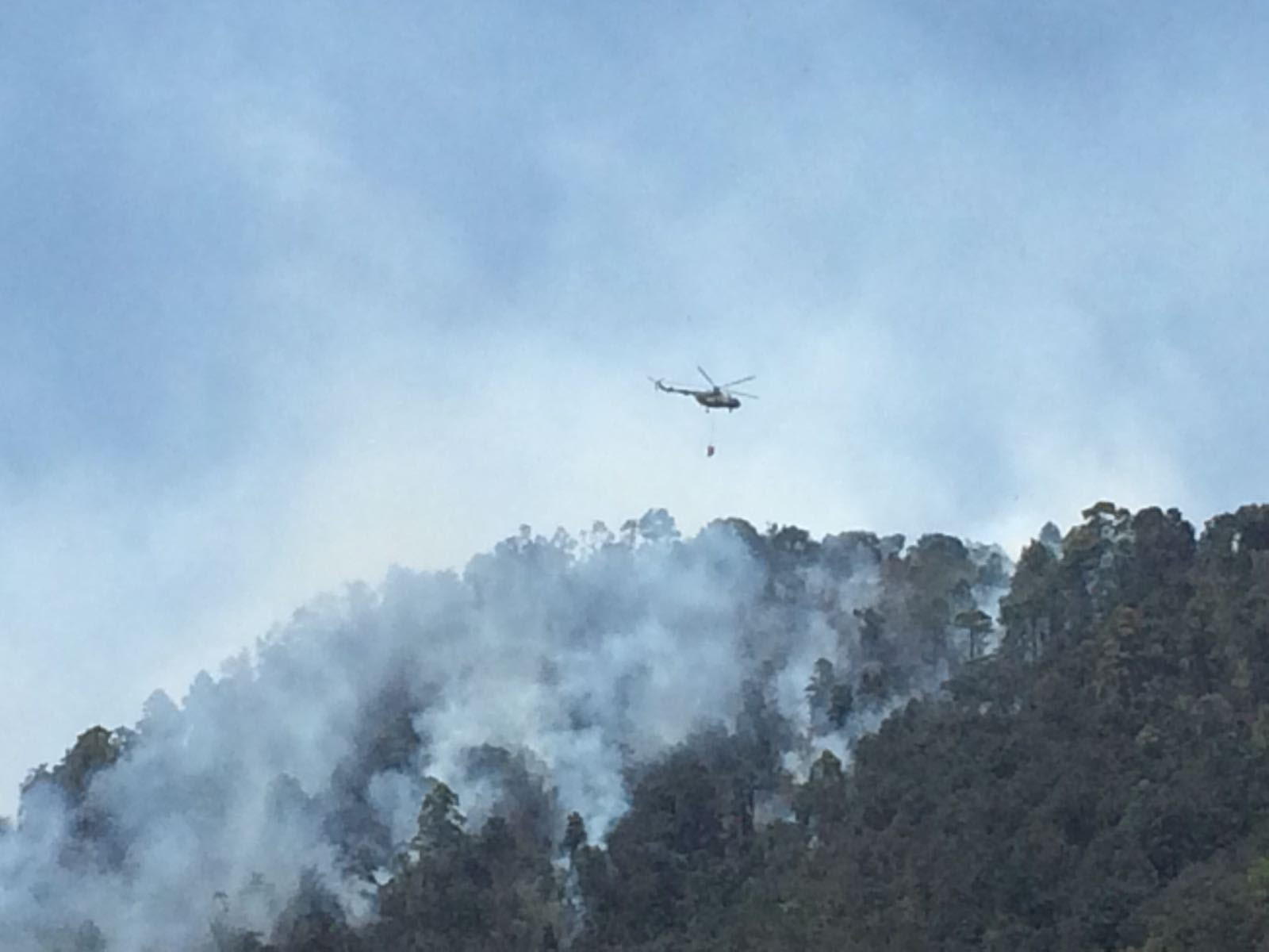 En lo que se refiere a las conflagraciones en la zona Oriente, la coordinación con la Gerencia estatal de la Comisión Nacional Forestal permite movilizar un helicóptero de la Secretaría de la Defensa Nacional (Sedena) equipado con helibalde para liquidar el fuego.