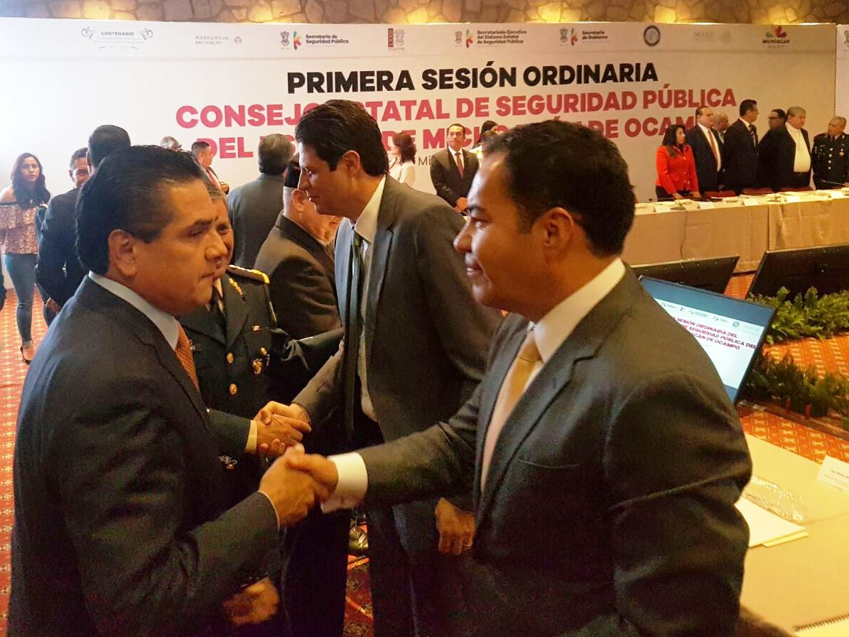 Morelia, Mich., 02 de mayo de 2017. El presidente municipal, Carlos Herrera Tello, asistió como representante del Consejo Intermunicipal de Seguridad Pública Región Zitácuaro, a la primera sesión ordinaria del Consejo Estatal de Seguridad Pública del Estado de Michoacán de Ocampo, misma que fue presidida por el gobernador, Silvano Aureoles Conejo.