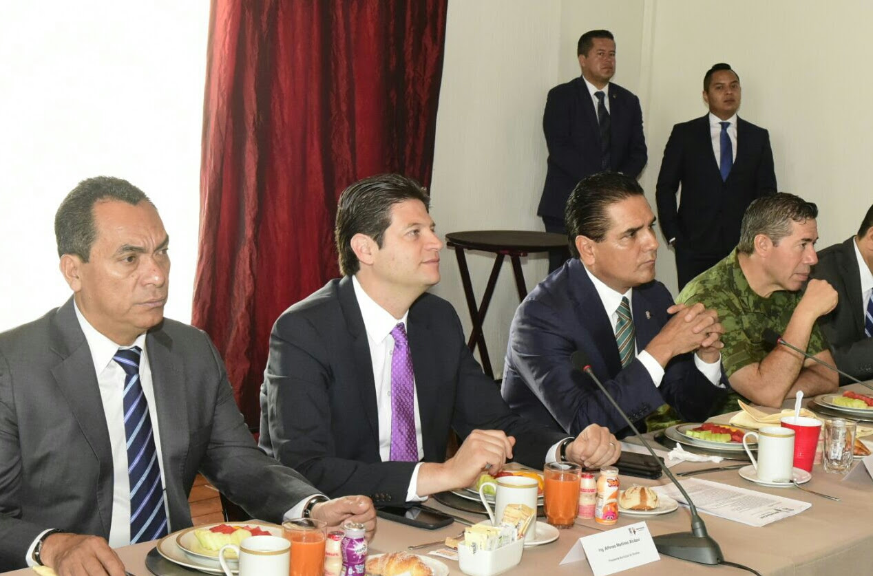 Fueron partícipes de esta reunión de trabajo el secretario de Gobierno, Adrián López Solís; el secretario de Seguridad Pública, Juan Bernardo Corona Martínez; el comandante de la 21 Zona Militar, general José Francisco Morales Cázares; el procurador general de Justicia estatal, José Martín Godoy Castro; el subsecretario de Seguridad Pública, Carlos Gómez Arrieta; el comisionado municipal de Seguridad, Bernardo León Olea, por mencionar algunos.