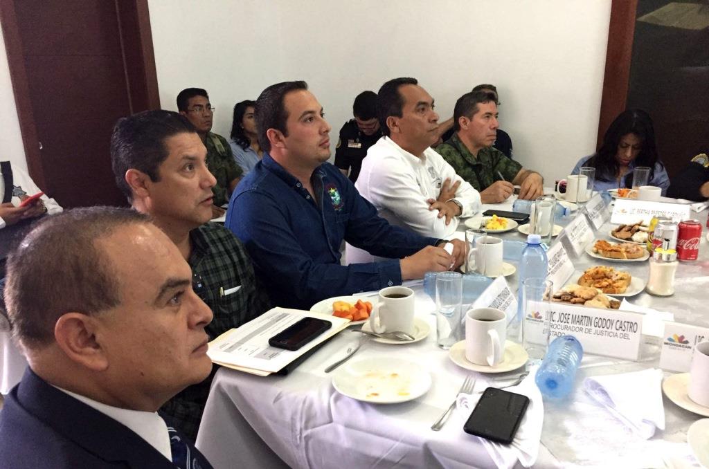 En las reuniones estuvieron presentes el general Francisco Morales Cázares, comandante de la 21 Zona Militar; el procurador general de Justicia de la entidad, José Martín Godoy Castro; el secretario de Seguridad Pública, Juan Bernardo Corona Martínez; la delegada de la Procuraduría General de la República, Bertha Paredes Garduño; además de funcionarios federales, estatales y municipales.