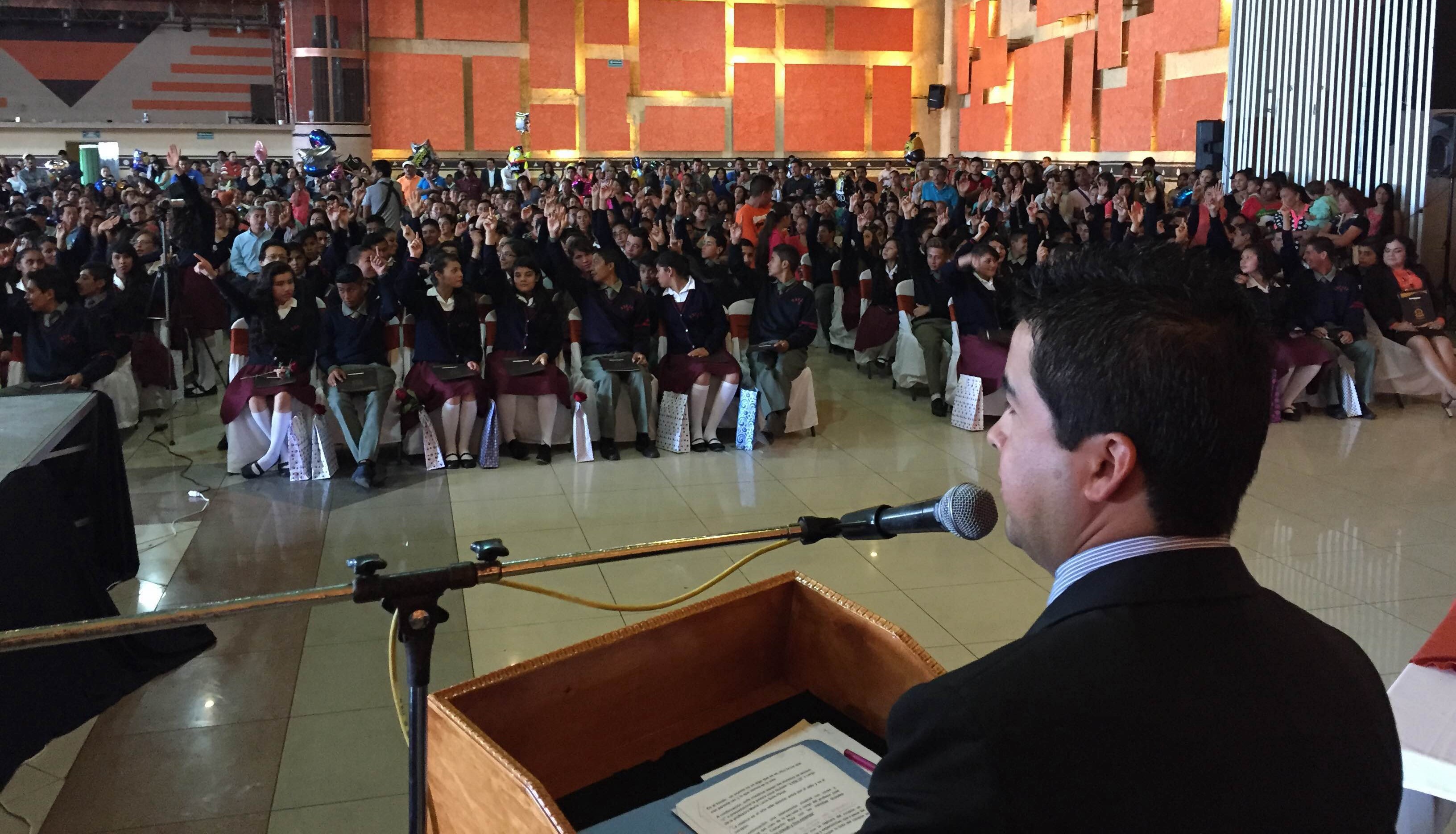 En un ambiente de festejo y celebración, 190 jóvenes recibieron su constancia de estudios por haber concluido la secundaria, acompañados de sus padres, amigos y familiares los alumnos disfrutaron de un evento en el que se presentaron varios números musicales y bailables típicos de la región.