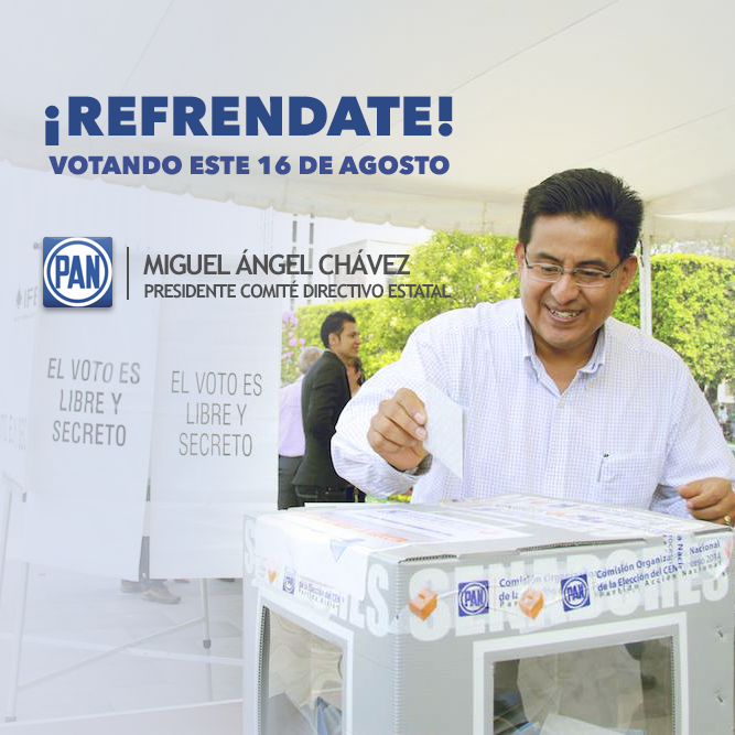 El Partido Acción Nacional (PAN) en Michoacán, en voz de su presidente estatal, Miguel Ángel Chávez Zavala, invitó a los aproximadamente 17 mil 700 militantes en la entidad a salir a las urnas este 16 de agosto en que se llevará a cabo la elección interna para la renovación del Comité Ejecutivo Nacional (CEN), ya que su participación en esta actividad partidista permitirá la aprobación del refrendo de su militancia panista.