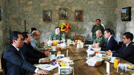 El motivo de esta reunión donde también estuvieron presentes el General de Brigada y comandante de esta Zona, José Francisco Morales Cázares; Florentino Coalla Pulido, Delegado de la Secretaría de Gobernación; el Delegado del Centro de Investigación y Seguridad Nacional, Armando Del Río Leal y el responsable del equipo del gobernador electo, Adrián López Solís; fue dar seguimiento a los trabajos que desarrolla en Michoacán el Ejército Mexicano, tanto en materia de seguridad como de apoyo social.