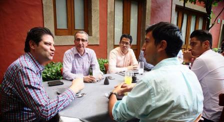 Morelia, Mich.- El alcalde electo, Alfonso Martínez Alcázar y el diputado electo de Jalisco, Pedro Kumamoto Aguilar, durante este lunes intercambiaron experiencias con miras a la construcción de un Gobierno emanado de las candidaturas independientes, y en donde la ciudadanía tenga mayores espacios de participación.