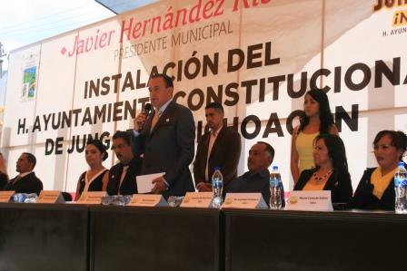 Acompañado por el pueblo Jungapense, Javier Hernández dijo: “ser el presidente del pueblo que me vio nacer es un privilegio y un gran honor, pero también es una gran responsabilidad que asumiré con toda mi inteligencia, mi visión y pasión, para que nuestro querido Jungapeo sea mejor. Sé que no será una tarea fácil, hay grandes desafíos por delante. Recibo un ayuntamiento con una deuda histórica y de lo poco que queda está en pésimas condiciones, y por si fuera poco, algunos de los trabajadores y regidores no les han pagado”.