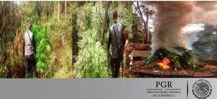 Morelia, Mich.- La Procuraduría General de la República (PGR) integra la averiguación previa en contra de quien o quienes resulten responsables, de la comisión del delito contra la salud, derivado del aseguramiento e incineración de 300 plantas de marihuana, en Michoacán.