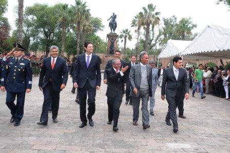 Morelia, Michoacán, a 30 de septiembre del 2015.- En lo que fue su último acto de gobierno, el titular del Ejecutivo en Michoacán, Salvador Jara Guerrero, encabezó los actos cívicos para honrar la memoria de José María Morelos y Pavón, a 250 años de su nacimiento.