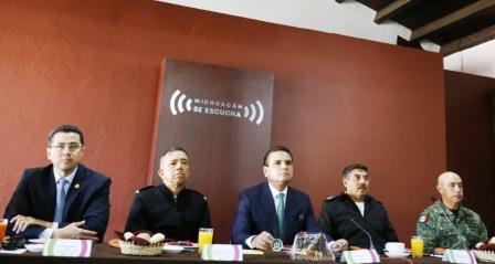 “Seguimos trabajando en estrecha coordinación en las acciones que se realizan en todo el territorio. Los dispositivos permanentes en Morelia, Uruapan y Zamora nos han permitido recabar información vital de inteligencia que nos permitirá próximamente entregar más buenos resultados”, comentó el secretario de Seguridad Pública, Israel Patrón Reyes.